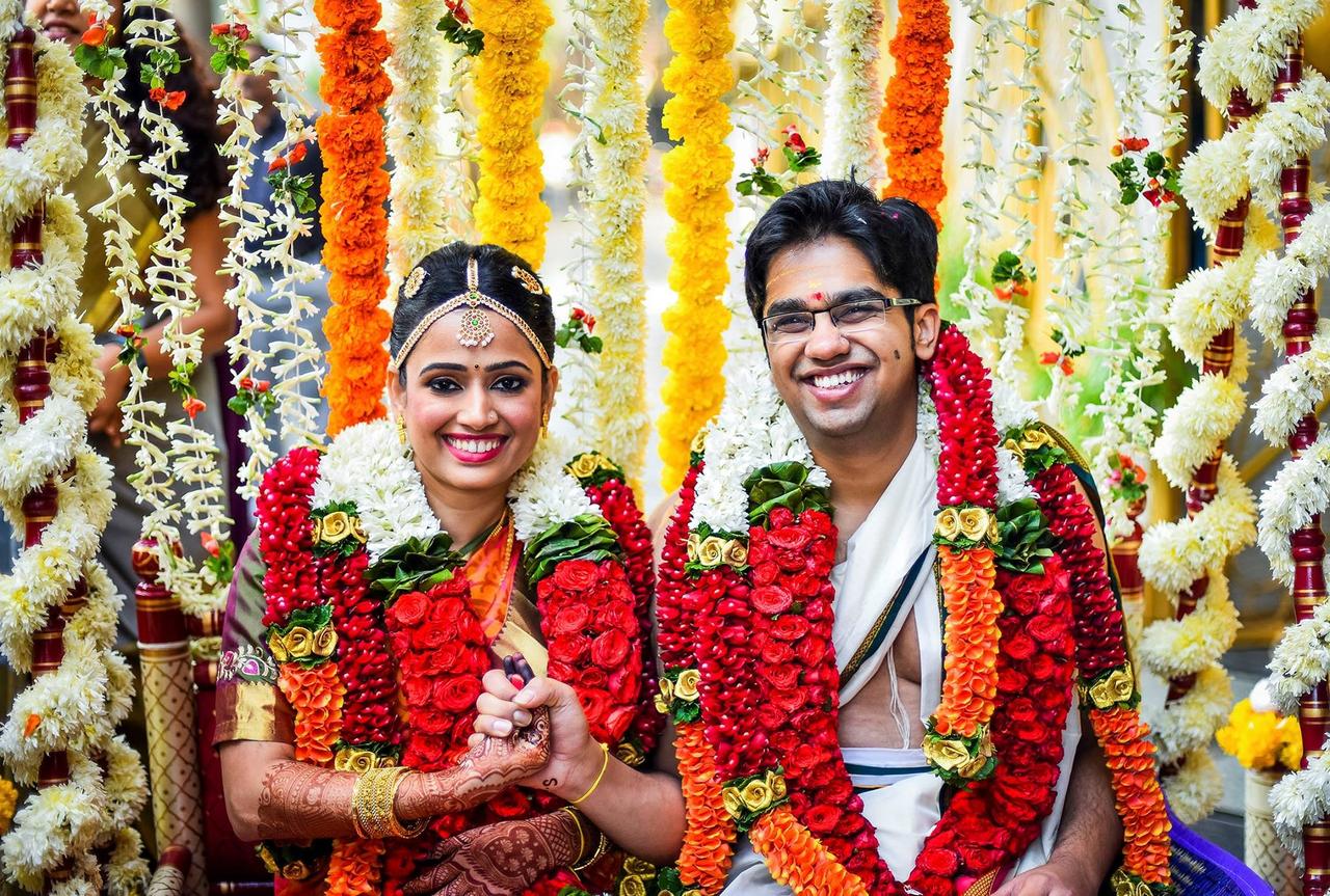 An ancient custom rooted in history, the Kashi yatra is one of the most delightful rituals of a Tamil wedding. Once the groom’s family reaches the venue, the groom grabs an umbrella, a walking stick, and food to head to Kashi (Banaras) to renounce worldly pleasures and dedicate his life to god. As everyone looks on, the father of the bride then convinces him to choose a life of domestic bliss instead of being a hermit and promises to give his daughter’s hand to him.